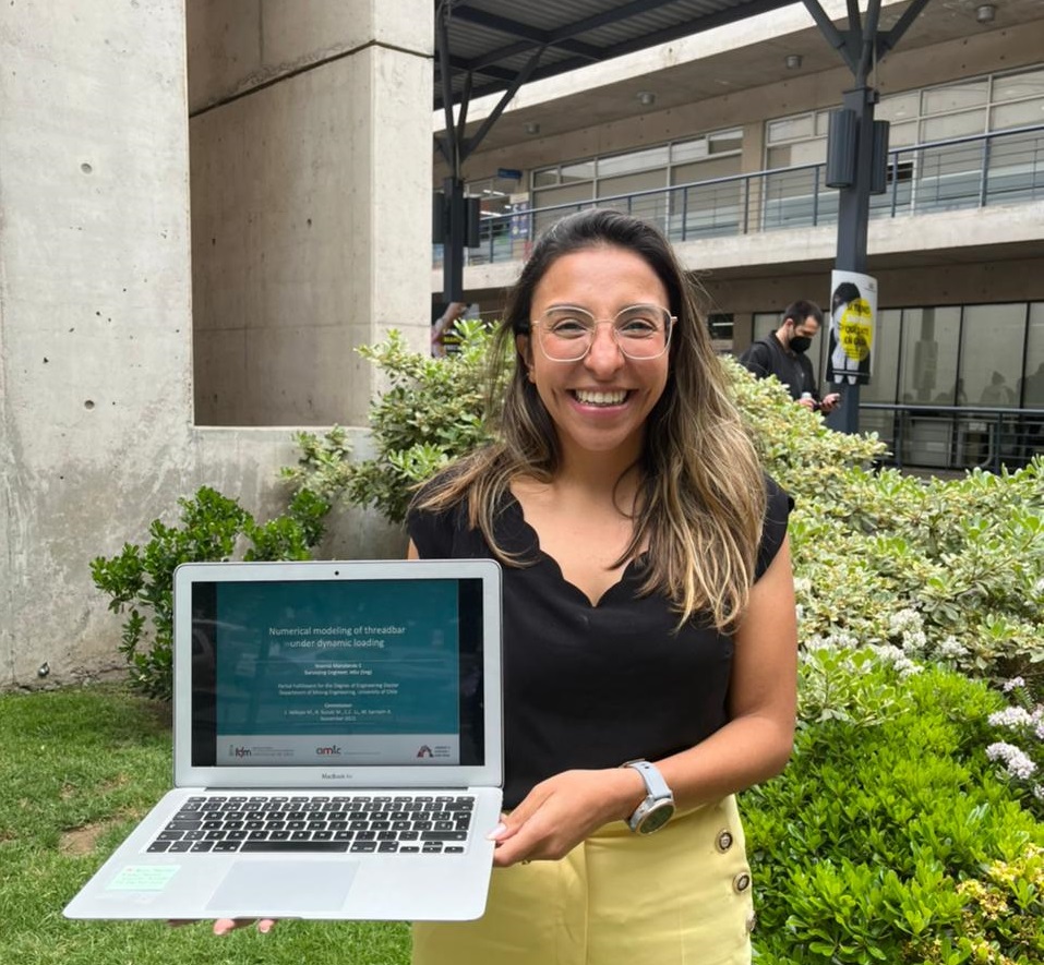 Yesenia Marulanda destacó además que “es un importante logro personal, pero lo más satisfactorio es aportar con innovación en una área tan relevante para la minería actualmente como es la estabilidad de excavaciones propensas a eventos dinámicosâ€.
