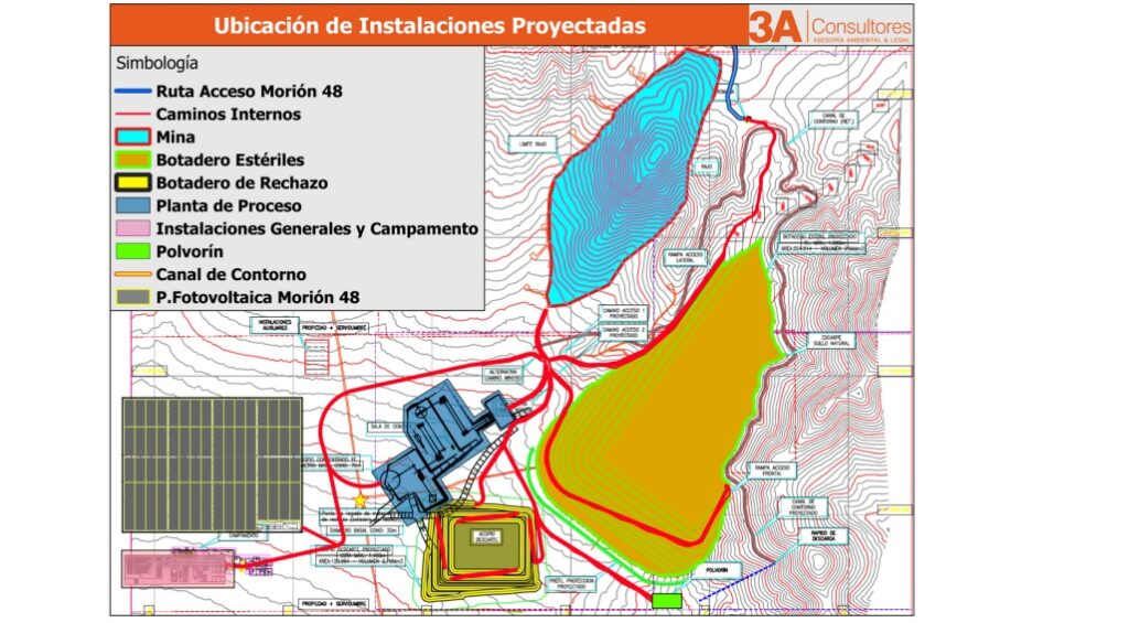 El emplazamiento de la planta de proceso, instalaciones generales, así como también, la ubicación del botadero de estéril y botadero de rechazo fue proyectado considerando variables económicas, ambientales y técnicas, especialmente la estabilidad física de las instalaciones.