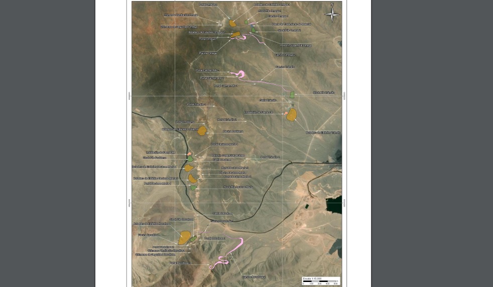En cada sector se proyecta la habilitación de Portales de acceso a la mina subterránea, Stocks pile de mineral y Botaderos de estériles.