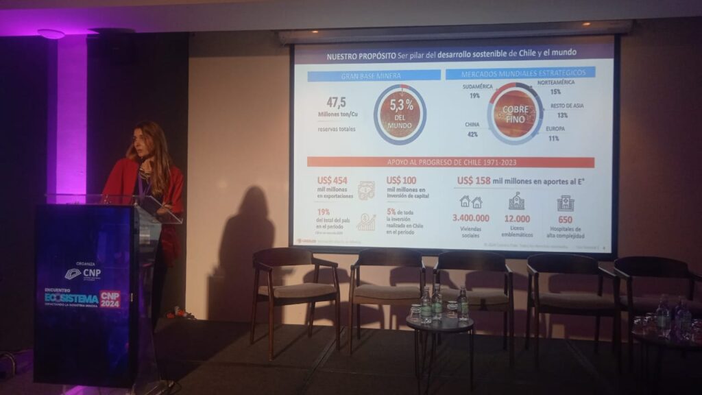 A ella se sumó la presentación de María Cristina Vallejos, gerenta de Desarrollo y Proyectos de la Empresa Nacional de Minería (Enami), quien dio cuenta de los principales focos y desafíos en torno a la generación de nuevas tecnologías al interior de la estatal.