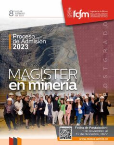 La Universidad de Chile informa a la comunidad que se encuentra abierto el proceso de postulación al Magíster en Minería que imparte el Departamento de Ingeniería de Minas.