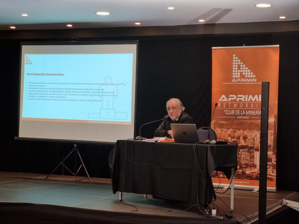 A pocos días del plebiscito de salida para votar la propuesta de nueva Constitución, el director ejecutivo de la Asociación de Proveedores Industriales de la Minería (Aprimin), Sergio Hernández, continuó con el análisis del texto y las normas más relevantes para el sector y el gremio, en el marco de un nuevo Networking Club de la Minería.