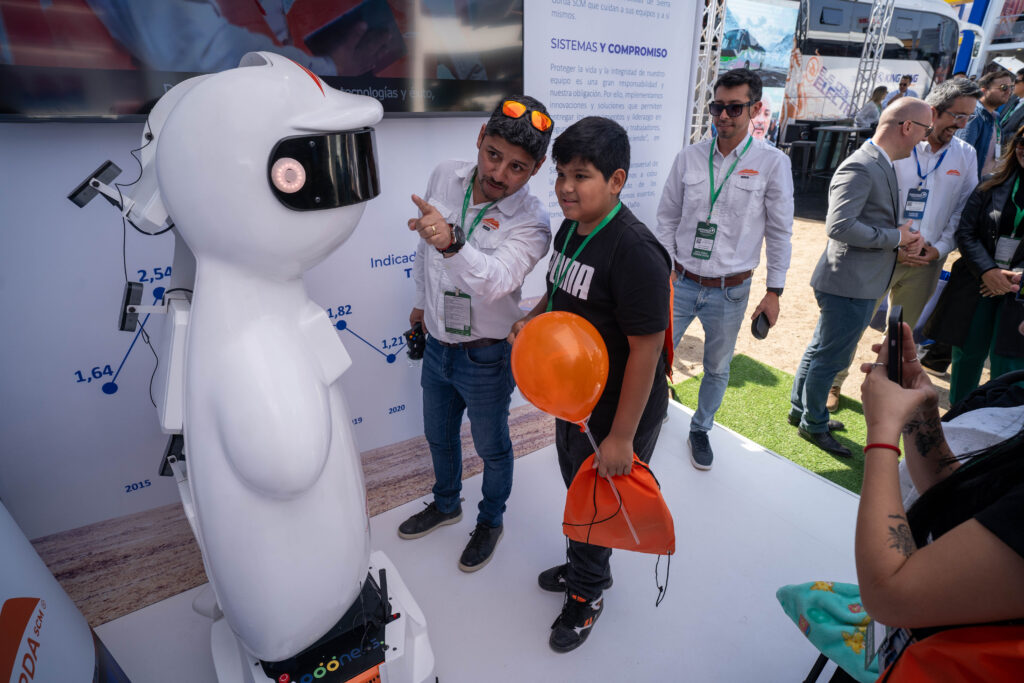 Pero uno de los favoritos de la jornada de lunes fue “SierraBot Evolutionâ€, el nuevo y más avanzado robot asistente de Sierra Gorda SCM, que fue visitado por cientos de personas en el “día uno†de Exponor.