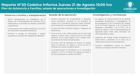 Codelco informa sobre las acciones realizadas a un mes del accidente en El Teniente