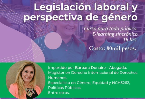 El curso es en modalidad sincrónica de 16 horas máximo para 20 alumnas, y las sesiones en plataforma TECFEMEduca con material bibliográfico + online sincrónico, con un valor de 80 mil pesos. Es impartido por la abogada Bárbara Donaire, magister de Derecho Internacional de Derechos Humanos, especialista en Género, Equidad, y NCH3262, Políticas Públicas, entre otras.