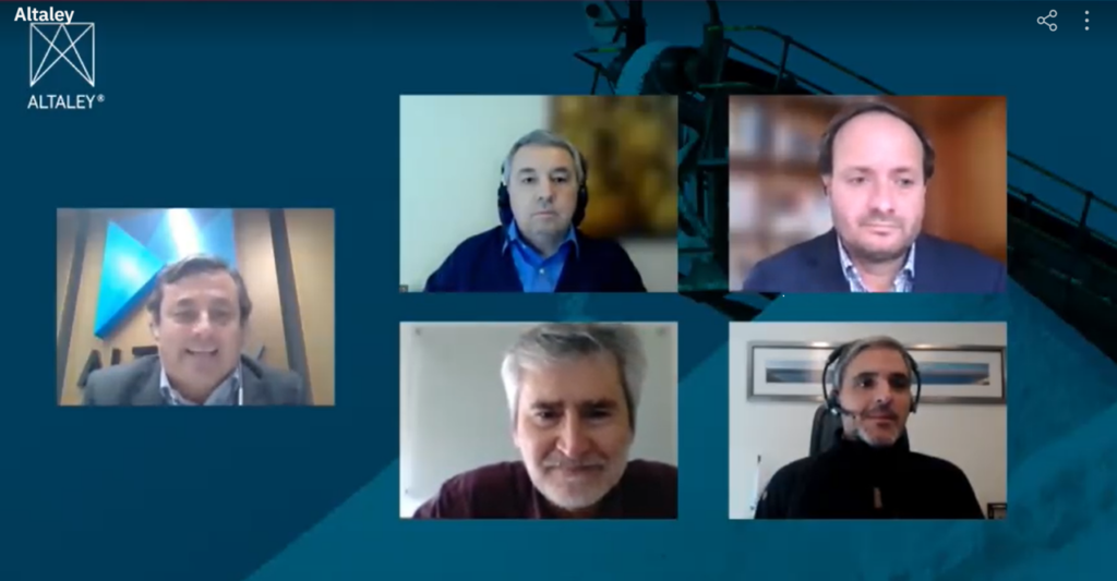 El encuentro, que fue moderado por Víctor Pérez, asesor de Minería Verde de la Corporación Alta Ley, contó con la participación de Fernando Lucchini, presidente ejecutivo de esta institución; Gonzalo Gutiérrez, asesor de Litio y Salares del Ministerio de Minería; Jaime San Martín, gerente de Desarrollo de Negocios de Codelco; Andrés Fontannaz, vicepresidente de M&A Litio de SQM; e Ignacio Mehech, vicepresidente de Asuntos Externos y Country Manager de Albemarle Chile.
